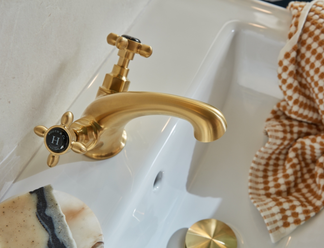 Perfect for contemporary and modern bathroom designs, browse our curated collection of premium Booth & Co. traditional taps in a rich and radiant, warm brushed brass finish.
