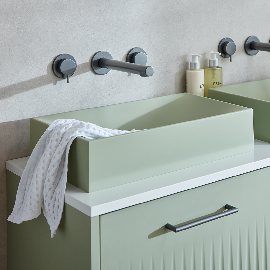 Our sleek levered brassware and minimalist chamfered vanities are rooted in effortless, evergreen design. With sleek, smooth surfaces and reassuring familiar form. For creating a space with a grounded, functional presence.